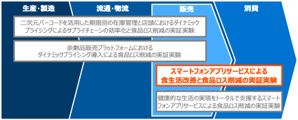 その一つである本実証実験は、消費者行動の変容による食品ロスの削減を目的に、販売から消費までを主な対象として実施します。