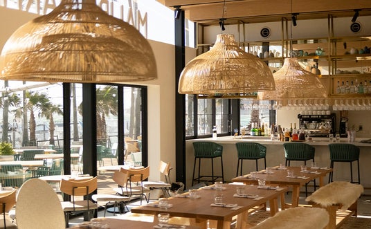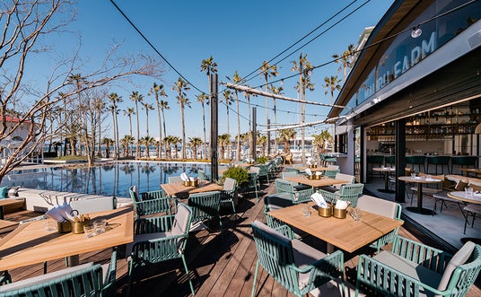 『マリブファーム 逗子マリーナ』では、現地の人気メニューのほか、地元湘南の新鮮野菜や相模湾の魚介類を使用した日本限定メニューもご用意しています。全開可能なサッシによりテラス席と内部が一体となる設えで、約50席の屋内席の他、マリーナの海からつながるような大きな水盤が広がる約80席のテラスには、三方を水に包まれたウォーターテラス席や暖炉を囲むファイヤーテラス席など、シチュエーションに応じてお使いいただけます。豊富なテラス席を有するため、ペット同伴でのお食事に最適なレストランです。