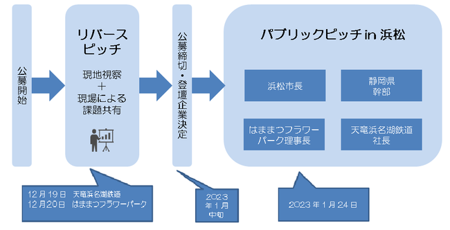 今回は、「浜名湖花博20周年記念事業」が行われる庄内半島(はままつフラワーパーク、浜名湖ガーデンパーク)及び浜松の誇る地域資源が豊かな天竜地域(天竜浜名湖鉄道)を対象エリアとしたパブリックピッチイベントを開催いたします。