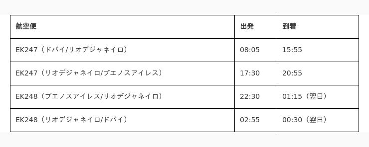 ブラジル、アルゼンチン、ドバイ間の週1便の増便は、2クラス構成のEK247便とEK248便として運航されます。チケットは、エミレーツ航空のホームページ(https://www.emirates.com/jp/japanese/)、アプリ、または旅行会社でご予約いただけます。