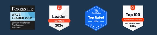KnowBe4は、世界中で65,000以上の組織と5,000万人を超えるユーザーに利用されており、日本では製造業や製薬業のトップ企業を含む国内500社以上に導入されています。KnowBe4は「Forrester WAVE Report for Security Awareness and Training Solutions」で市場リーダーの評価を獲得するほか、米国最大級のソフトウェアレビューサイトであるG2からはセキュリティ意識向上トレーニングとSOARの両カテゴリーでそれぞれ20四半期連続、13四半期連続でNo.1の評価を得ています。そのほか、数多くの業界エキスパートがKnowBe4を再考の評価を与える同時に5,000万人を超えるユーザーからの信頼を獲得しています。