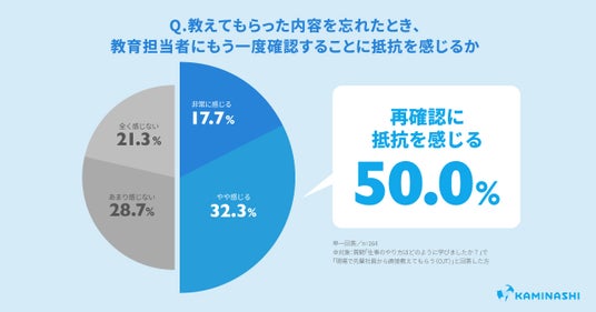 さらに「OJT」を選択した回答者に「教えてもらった内容を忘れたとき、教育担当者にもう一度確認することに抵抗を感じますか?」と質問したところ、50.0%が「抵抗がある」と回答しました。加えて、多言語での教育を受けた回答者に「母国語で理解できるので、仕事を早く覚えられていると感じますか?」と質問したところ、81.4%が「そう感じる」と回答しました。