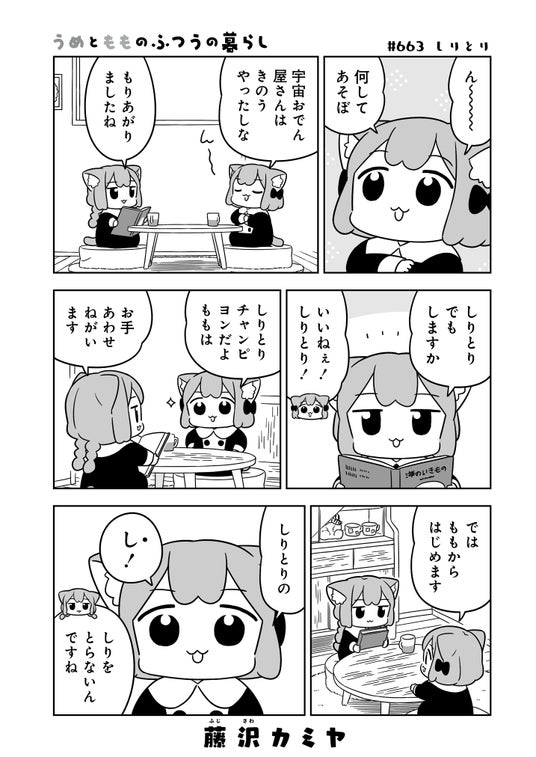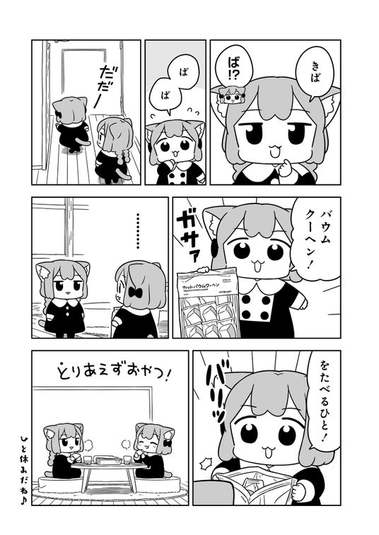 ねこっぽい姉妹のうめとももが、おいしいものや楽しいこと、毎日のちょっとしたことに幸せを見つけながら楽しく暮らす、まったりショートストーリーです。