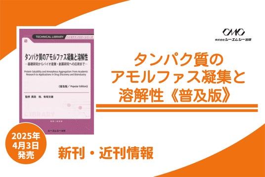 株式会社シーエムシー出版は、書籍『タンパク質のアモルファス凝集と溶解性《普及版》(監修:黒田 裕、有坂文雄)』(定価:税込5,940円)を2025年4月3日に発刊いたします。詳細は以下をご覧ください。