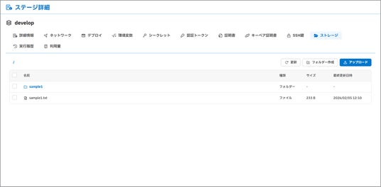 ポータル画面のステージメニュー内に、ストレージブラウザーを追加しました。