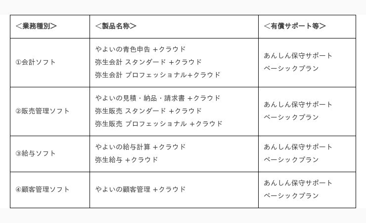 弥生のクラウドサービス、あんしん保守サポート契約1年間無償延長