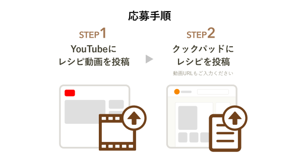 ・応募方法:YouTubeに動画を投稿した後、クックパッドにレシピと動画URLを投稿する。