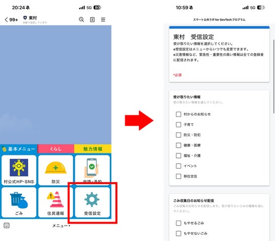 住民の希望に応じた配信だけを届ける「セグメント配信」機能を導入。欲しい配信カテゴリーを「受信設定」に回答することでカスタマイズすることができます。住民がほしい情報に絞って配信ができるため、情報発信がこれまで以上に効果的になることが期待されます。