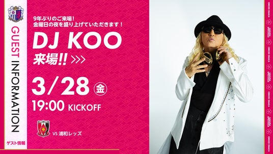 3 月 28 日(金)明治安田J1リーグ第 7 節浦和レッズ戦に DJ KOO(TRF) さんの来場が決定しましたのでお知らせします。