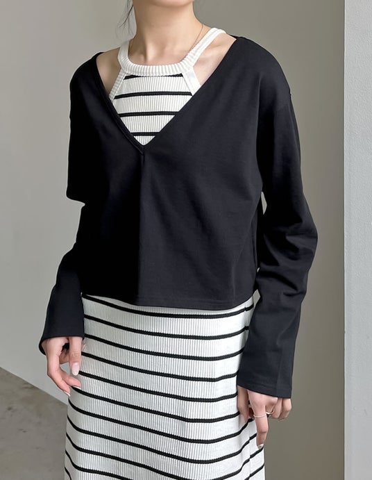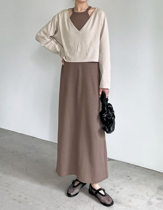 商品名:[2点セット]テレコアメスリワンピース×VネックTシャツセット