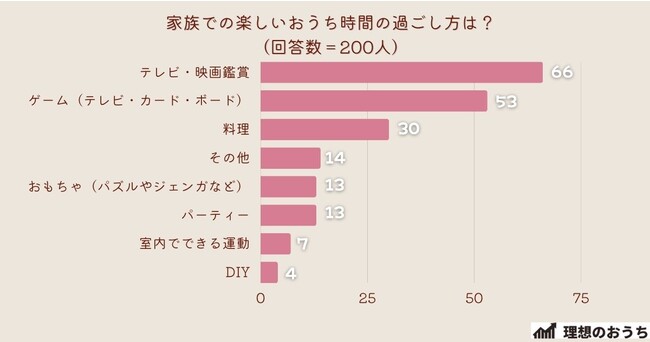 「家族での楽しいおうち時間の過ごし方は?」とアンケート調査した結果、1位は『テレビ・映画鑑賞』でした。