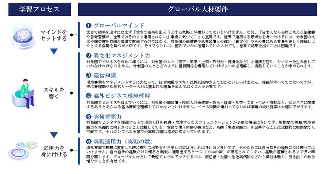 インサイトアカデミーでは海外事業経験豊富な専門家5,000名から収集した情報に基づき、グローバル人材要件を以下の6つと定義しています。