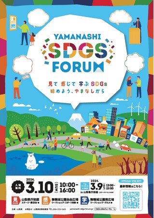 山梨県では、県内のSDGsの取り組みの輪を広げ、山梨県全体が同じ方向を向いてSDGs達成に向けた行動を開始する機会となるよう、「YAMANASHI SDGs FORUM 2024」を令和6年3月10日に開催します。(詳細は、以下チラシのとおり)