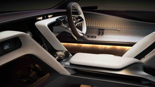 例えば、250年以上の歴史を持ち、有刺植物を防ぐ布の発明でも知られる英国フォックス・ブラザーズ社による100%ウールのファブリックが、インテリアにダムソン オンブレ(濃淡グラデーション)効果をもたらし、軽量な3Dプリント製チタンパーツと美しく調和しています。車内空間は、操作性、快適性、そして感情に響くディテールまでが、繊細に調和しています。移動するだけの空間ではなく、乗員一人ひとりの感情や感覚に寄り添う体験が、このEXP15には備わっています。