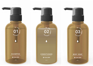 ヴィアインオリジナルインバスは、SDGsコンセプトの天然由来保湿成分を配合した、地球にも身体にも優しい製品です。出張や旅行で訪れたお客様が、その日の緊張や疲れを洗い流し、気持ちよく「明日」を迎えていただくことを願って開発いたしました。