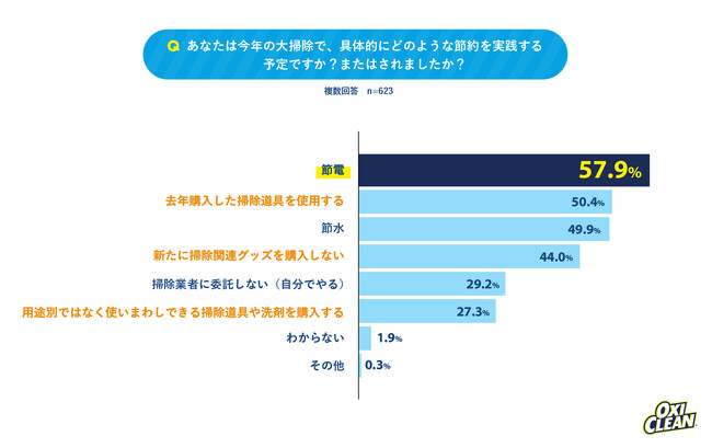 Q あなたは今年の大掃除で、具体的にどのような節約を実践する予定ですか?またはされましたか?(複数回答)n=623