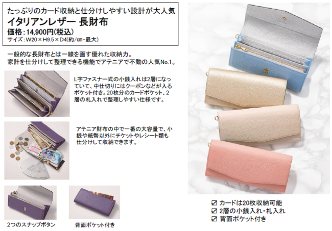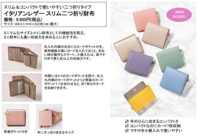 株式会社アテニアはオーダーメイド『イタリアンレザー財布』の今シーズンのラインナップ<全6型・7色/9,900~17,900円(税込)>を発売。2022年7月19日(火)より、通信販売にて予約をスタートします。
