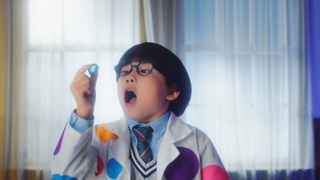 新TVCMでは、よりカラフルにリニューアルした「つかめる実験!ふしぎ玉」の、不思議でワクワクする世界観を表現しました。知育菓子(R)実験を始めようとする男の子の前に現れたのは、白衣の“ふしぎ玉ダンサーズ”。どこかミステリアスな音楽と、「おいしいポーズ」や「プルプルポーズ」などの振り付けがかわいい、印象的なTVCMに仕上がりました。音楽は、子ども向け音楽の名手・吉田ゐさお氏の作曲。本当に水がつかめる「つかめる実験!ふしぎ玉」に驚く、男の子の可愛らしい表情にも注目です。