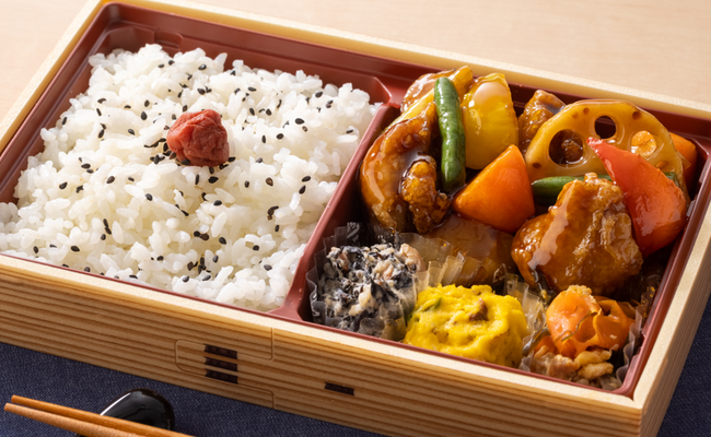 鶏と野菜の“柚子”黒酢あん弁当 940円(税込)