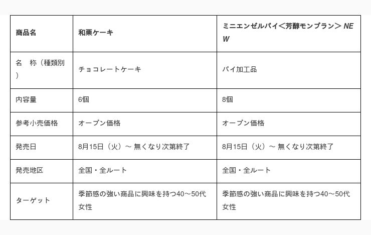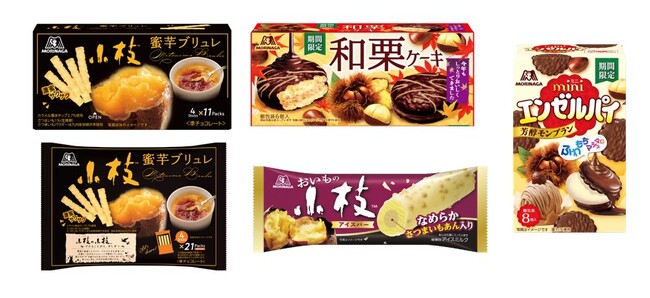 9月9日は、五節句のひとつ「重陽の節句※」。「栗の節句」とも言われ、古くから秋の収穫を祝って栗を食べる習慣があります。森永製菓では2011年から秋の味覚を楽しんでいただこうと栗フレーバーの商品を発売してきました。今年は毎年大変好評を頂いている「和栗ケーキ」に加えて、モンブランペーストを使用した「ミニエンゼルパイ<芳醇モンブラン>」を発売。また、各社から秋の味覚にちなんだ商品が多く発売されており、芋味のお菓子やアイスの人気も高いことから「小枝<蜜芋ブリュレ>」そして「小枝アイスバー」としては初のお芋フレーバーである「おいもの小枝アイスバー」を新発売いたします。森永製菓の主力商品で秋の味覚のお菓子・アイスをご提供することで、秋の店頭を盛り上げるとともに、お客様に笑顔をお届けしてまいります。