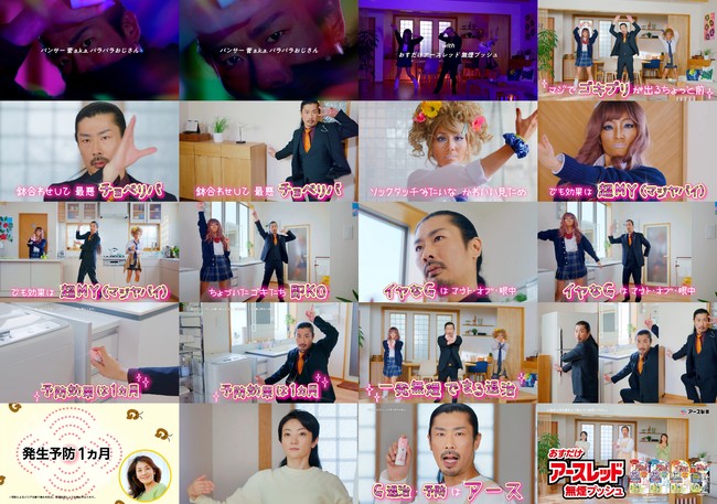 本WebCMでは、菅さんが『おすだけアースレッド 無煙プッシュ』の「簡単1プッシュ式なのに、ゴキブリをまるごと退治&1ヵ月の発生予防」という特長をパラパラダンスにのせて伝えます。WebCM中では、菅さんが1990年代に若者の間で使われた「チョベリバ」や「チョベリグ」などのワードを使っており、どこか懐かしさ感じる仕上がりになっております。菅さんだからこそ魅せることができるキレのあるパラパラの踊りと、懐かしさを感じる曲に合わせゴキブリを退治する姿に注目です。ぜひご覧ください。