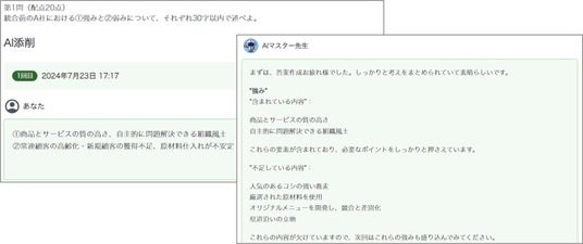 これらの学習効率向上に加えて、生成AIを活用し、資格学習中の疑問に即座に答えてくれる「AIマスター先生」や記述答案への個別添削を即時実施してくれる「AI添削」を提供することで、より自分に合っていて続けやすい学習体験を提供する伴走者として、受講生の疑問や学習状況に合わせて個別アドバイスや心理的サポートの提供が可能となります。