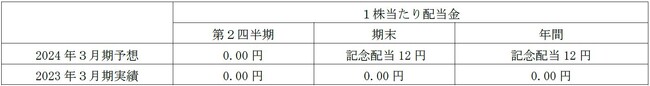 当社は、本日開催の取締役会において、2024年3月期の1株当たり期末配当予想につき、下記のとおり記念配当を実施する方針としましたので、お知らせいたします。