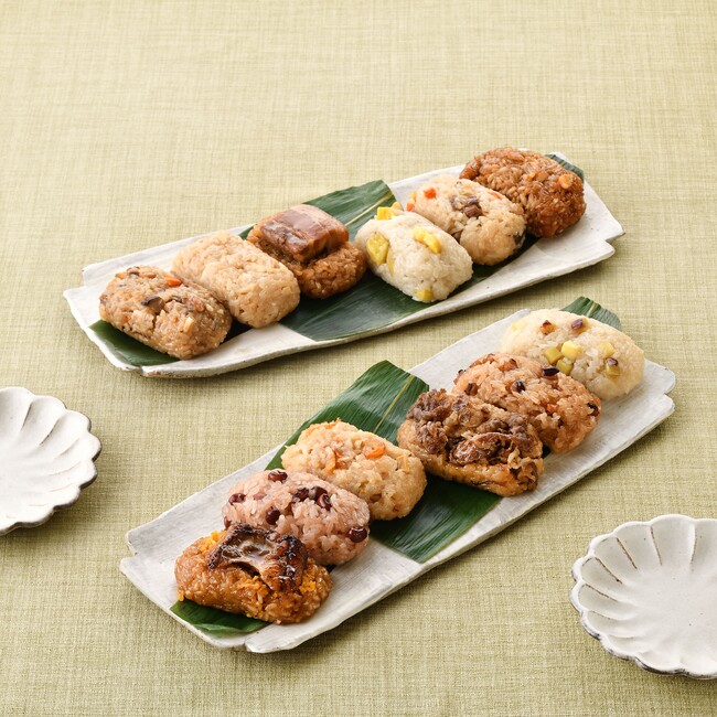 爽やかな笹の香りが12種類のおこわの味わいを引き立てます。海老、穴子、鯛、鶏ごぼう、といった人気の定番と栗おこわなど季節の味をセットにしました。