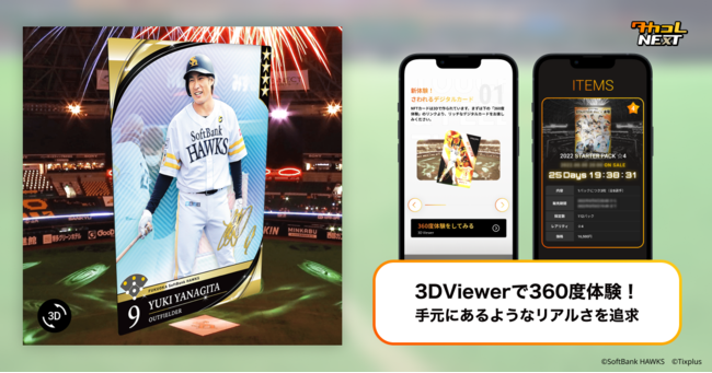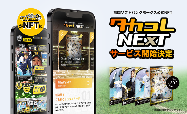 電子チケット事業やチケット二次販売「チケプラトレード」、視聴PASS販売プラットフォーム「StreamPass」を運営する株式会社Tixplus(本社:東京都渋谷区、代表取締役:池田 宗多朗)は、福岡ソフトバンクホークス株式会社と共同で、福岡ソフトバンクホークス初のオリジナルNFTサービスとして「タカコレNEXT」を2022年6月10日(金)から提供を開始します。「タカコレNEXT」は、福岡ソフトバンクホークスの選手肖像を活用した公式NFTコンテンツ販売サービスです。また、本日から6月30日(木)までの期間に、福岡ソフトバンクホークス公式LINEアカウントと友だち登録し、キャンペーンに応募された方を対象に、東浜投手のノーヒットノーラン記念デザインNFTカードをプレゼントするキャンペーンも実施します※。