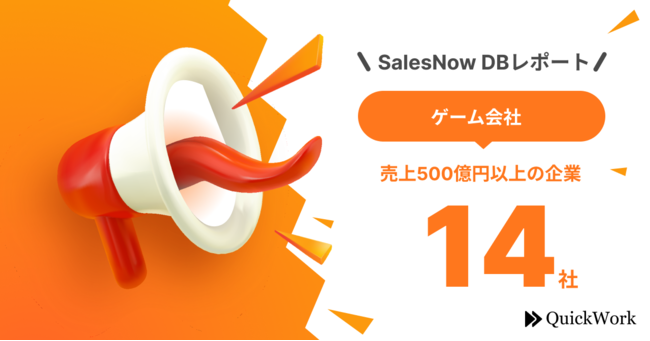 「データとテクノロジーで、ビジネスを加速させる。」をミッションに掲げ、日本全国約510万社の企業データを基盤に営業の効率化を支援する「SalesNow」を展開してきた株式会社QuickWork(本社:東京都渋谷区、代表取締役:村岡 功規、以下「QuickWork」)は、日本最大級のデータベース「SalesNow DB」のデータを活用した「SalesNow DBレポート」から、今回は「売上500億円以上のゲーム会社14社」をピックアップしました。