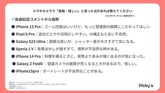 このたびPicky’s(https://picky-s.jp/)およびPicky’s Life(https://pickys-life.jp/)では、インターネット上でカメラ性能が良いスマホに関するアンケート調査を実施し、その結果を発表します。