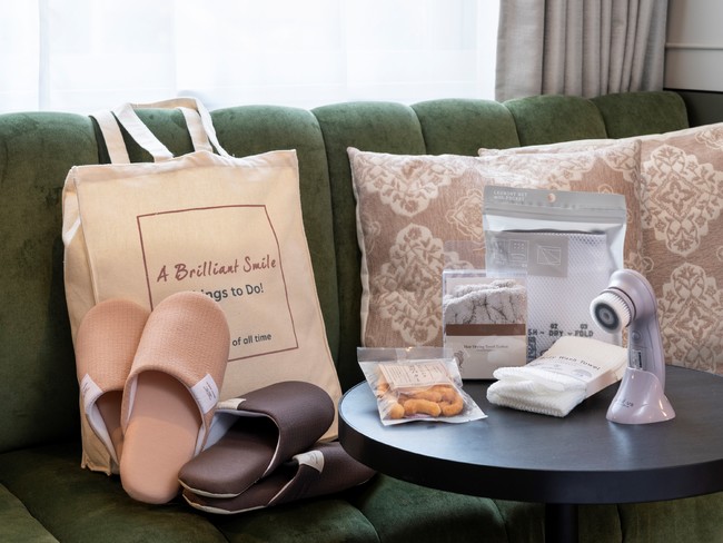 コンセプトルームにご宿泊のお客様に、それぞれのテーマに合わせ、お持ち帰りいただける3COINSアイテムをご用意いたしました。おうち時間を“ちょっと幸せ”にするアイテムを、ご自宅でもご体験ください。