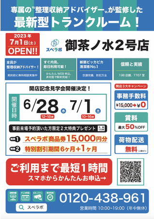 オープンに合わせ6月28日(水)、7月1日(土)に見学会を実施しますので、ぜひ【スペラボ・御茶ノ水2号店】にお越しくださいませ。
