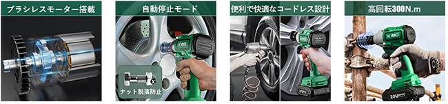 ナットなどを緩める時、力のコントロールが難しく、ナットが飛び落として紛失するか、もっと危険な場合などを徹底的に防止できる自動停止モードがついており、自動停止モードのボタンを押し、力過剰でナッツが紛失することを防ぐことができます。