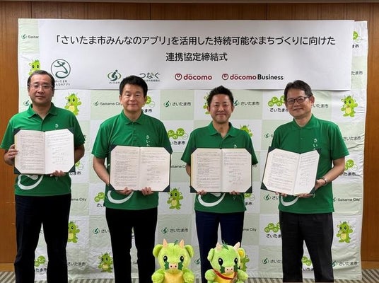 さいたま市は、スマートフォンアプリ「さいたま市みんなのアプリ」を活用し、本市の地域課題の解決、地域社会及び企業価値の成長・発展に繋げることを目的として、株式会社NTTドコモ、NTTドコモビジネス株式会社及び株式会社つなぐと連携協定を締結しました。