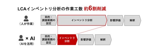 - - LCA算定のうちインベントリ分析にかかる作業工数は、全体の約5割にあたりLCA算定全体の効率化へも大きく貢献。