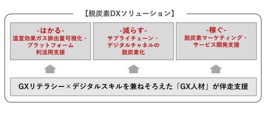 脱炭素社会実現に向けた専門カンパニーとして2023年4月に設立。GXリテラシーと生成AIやローコード・ノーコードなどのモダンテクノロジーを使いこなすデジタルスキルを兼ね備えたGX人材が企業の現場で伴走し、脱炭素DX推進を支援。GX人材、LCAをもとにしたサービス・デザインチーム、脱炭素DXマーケティング、脱炭素DX人材育成、LCA算定支援などを提供しています。