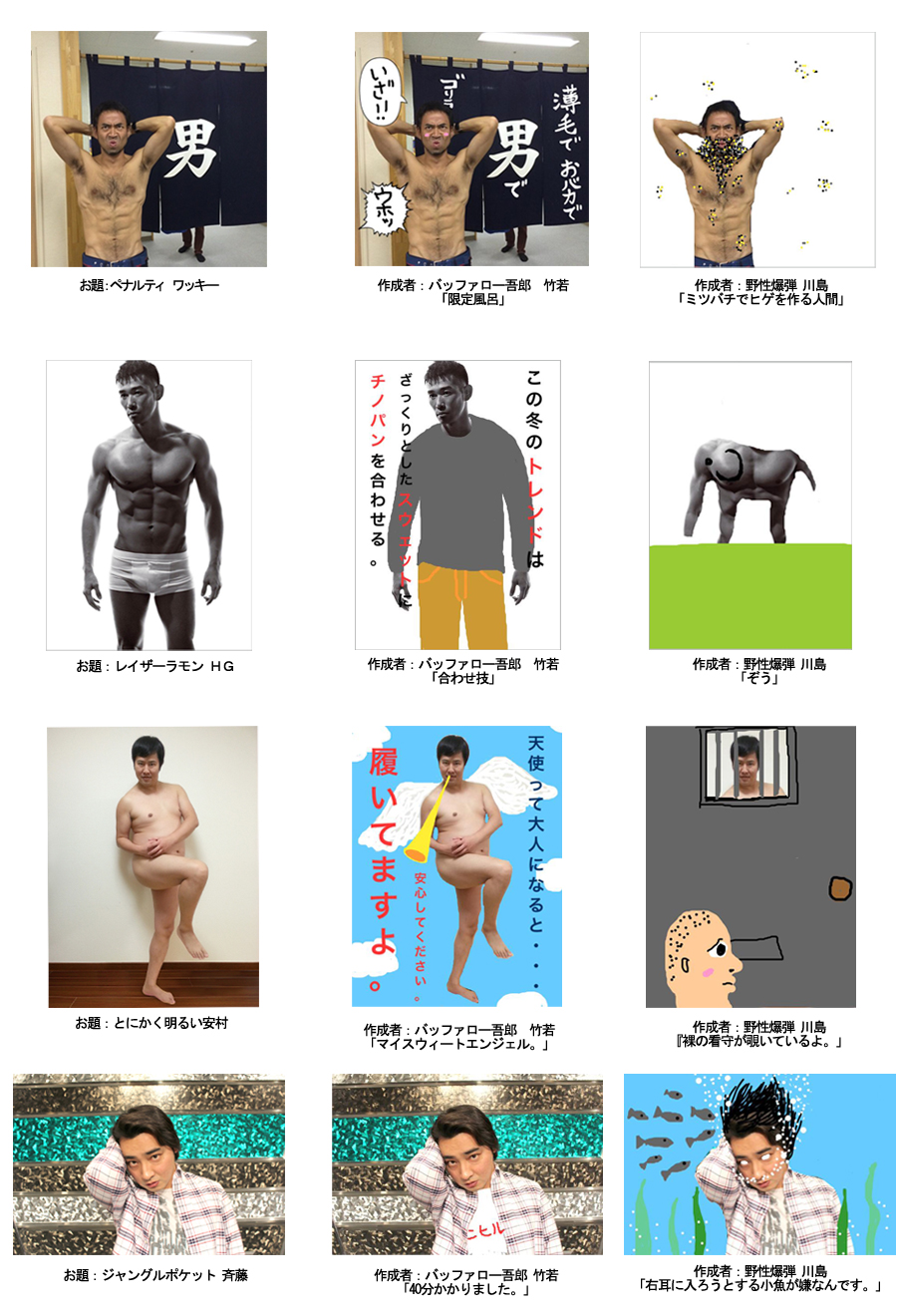 “『おもタス』専属モデル”である、ペナルティ ワッキー、レイザーラモン HG、とにかく明るい安村、ジャングルポケット 斉藤慎二などの肉体美を撮影した写真をアプリ上に公開し、それぞれの写真に与えられたお題にそって「おもフォト」を作成・投稿するアート大喜利を開催します。