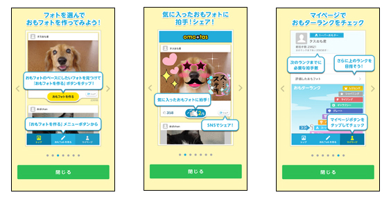 ユーザーは、上記の3つの立場で楽しむことができ、作成した「おもフォト」の拍手数による評価に応じて、「ルーキー」から「レジェンド」まで、「おもター」ランクがアップしていきます。