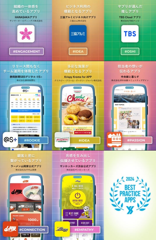 「BEST PRACTICE APPS」は、Yappliで開発されたアプリの中から、機能活用・独自施策・効果等の、様々な観点において優良事例となったアプリの功労を称え表彰するものです。
