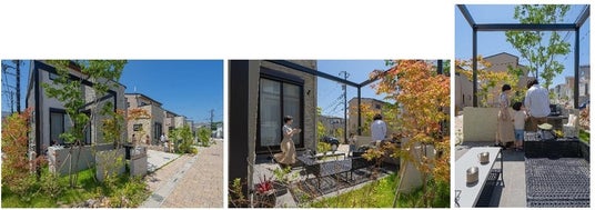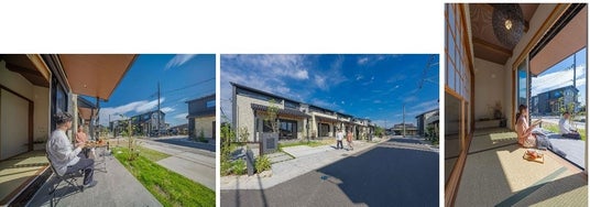 全8 棟の分譲住宅。現代日本においては、核家族化によるコミュニティの欠如やIoT普及に伴う交流の場の減少が見られます。そこで、同分譲住宅では、日本でよく見られた昔ながらの「縁側」の団らん風景を現代に見直すことで、コミュニティが生まれるきっかけをつくりました。また、日差しを遮り、風の通り道ともなる「縁側」を採用することで、自然を活用したエコロジカルな住宅となっています。