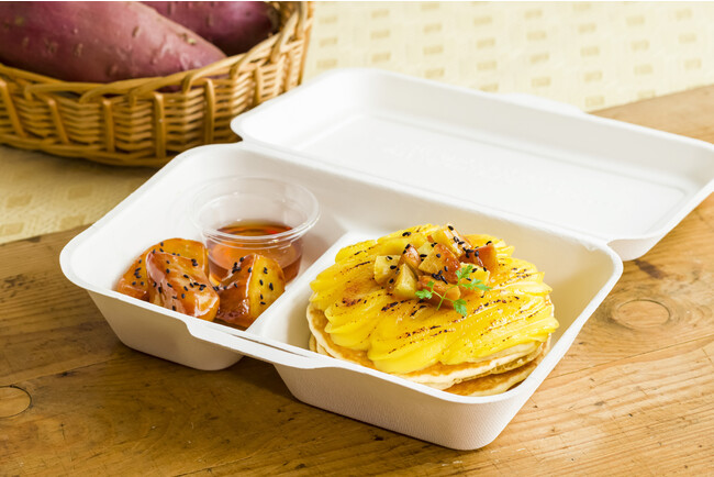 香ばしくキャラメリゼした濃厚なスイートポテトクリームと蜜をたっぷり絡ませた大学いもをのせたパンケーキ。バニラアイスとご一緒にどうぞ!