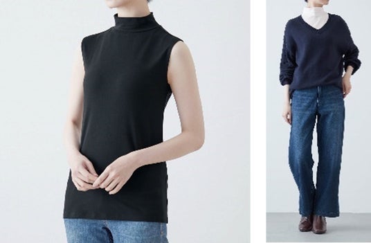 着ぶくれせず、動きやすいノースリーブデザインで、トレンド感のあるレイヤードスタイルが完成します。SNSでいただいた「基本薄着だけど、首もとはあたためたいからすごく重宝している。復活を切望」という声にお応えして5年ぶりの復刻です。