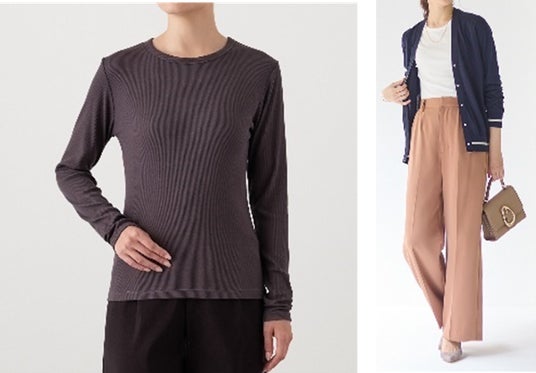 今年の新商品は、年々長くなる「残暑」に着目しました。昨年は11月に入ってからも東京都心にて27.5℃を記録するなど日中は汗をかくほど暑く、しかし朝晩は冷え込み一日の寒暖差が大きい日が続き、服装に悩まれた方も多いのではないでしょうか。今年も残暑は長く続くと言われており、そんな日々を少しでも過ごしやすくするための商品を開発しました。端境期にはトップスとして、本格的に寒くなればニットを重ねたりと万能な用途で着用いただけるラインナップです。
