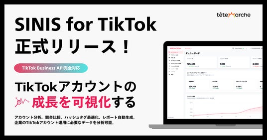 SNSマーケティング支援を行うテテマーチ株式会社(本社:東京都目黒区、代表取締役:上田 大介)は、TikTok公式アカウント運用に特化した分析ダッシュボード「SINIS for TikTok(サイニス・フォー・ティックトック)」を、2025年7月16日に正式リリースしました。