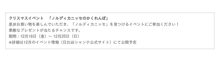名 称:Nordic Christmas in HIBIYA Chanter ~妖精ニッセたちのクリスマス~