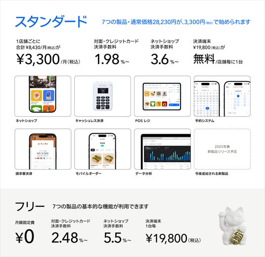 ~業種・業態を問わずに使える。レジ・EC・決済・分析などお店に欠かせない機能をまとめて、導入しやすい低価格で提供~