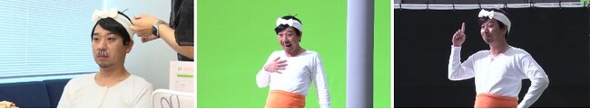 腹巻、ハチマキの衣装とヒゲメイクによって、バカボンのパパそっくりの姿で現場入りした千鳥 大悟さん。スーシャルディスタンスキャンペーンで人気漫画とのコラボが3度目となる今回は、キャラクターになりきっての演技も板についてきたのかOKテイクを連発。順調に撮影が進みましたが、途中、「スーシャルディスタンス」の”ディスタンス”のイントネーションに苦戦。何度も練習を重ねるも、上がり口調になってしまい「わからんようになる」とぼやいてスタッフの笑いを誘う場面もあり、明るい雰囲気の現場での撮影となりました。