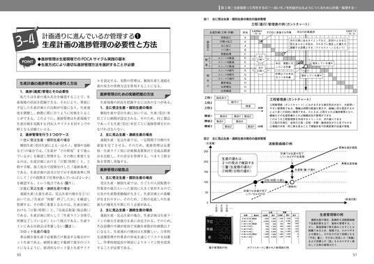 その対策として、モノづくりの全体最適化を目指し、開発→生産→販売を統合管理して市場変動に対応できるフレキシブルな生産体制の構築が求められています。さらに、市場のニーズに対応して計画的かつ効果的に作業を行うことや、生産管理部門が各部門をリードして計画通りの生産で利益を獲得することは、生産管理の主要な機能と言われています。◆品質や利益に強い人材になるための基礎知識を網羅