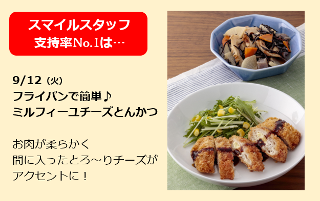 お客様の元へ毎日配達を行うスマイルスタッフが選んだ人気メニューが「Cut Meal」コースに勢揃い!9/11号だけでなく、9/18・10/9号にも登場しますのでお楽しみに♪